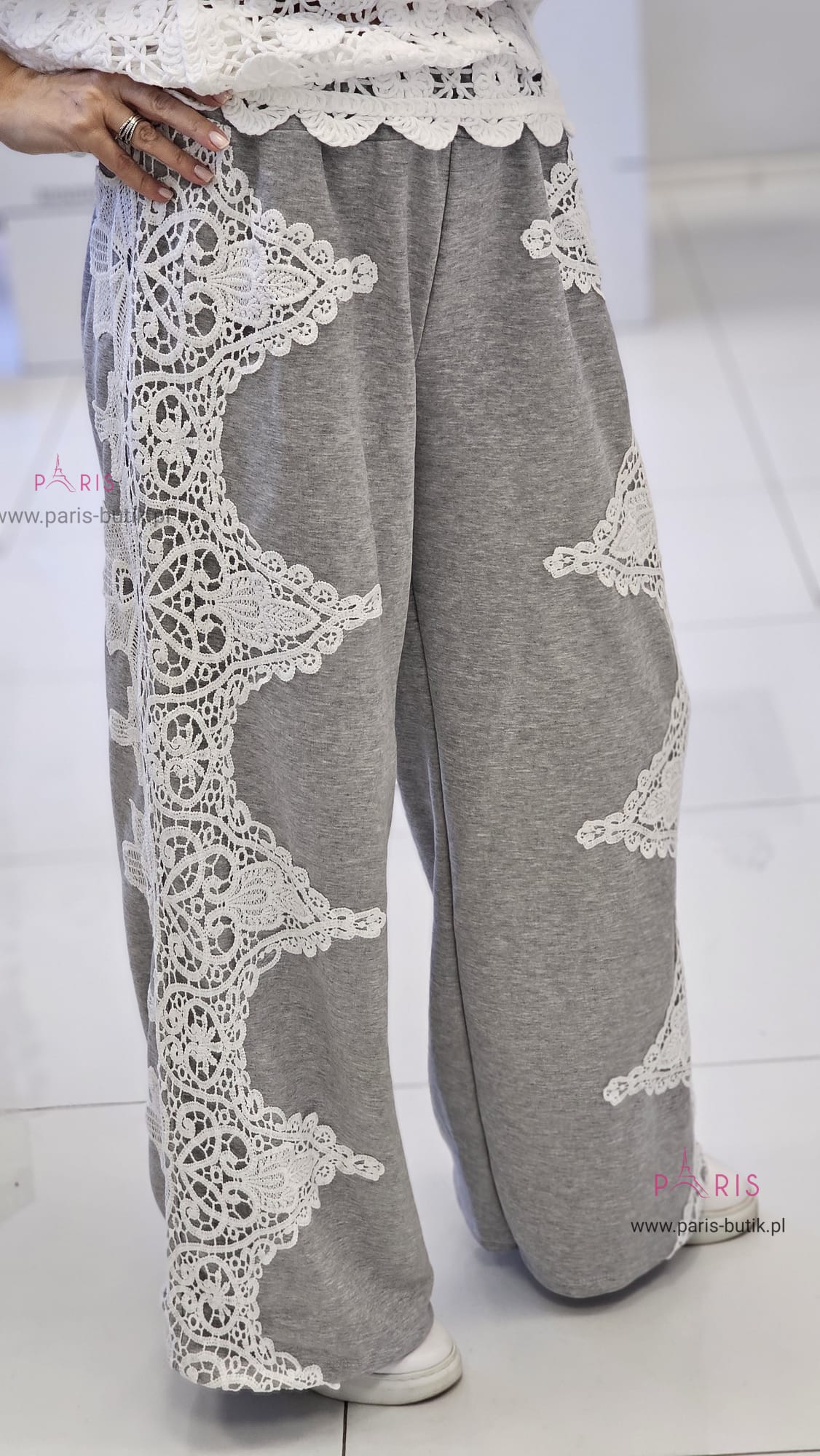 Spodnie szydełko szare